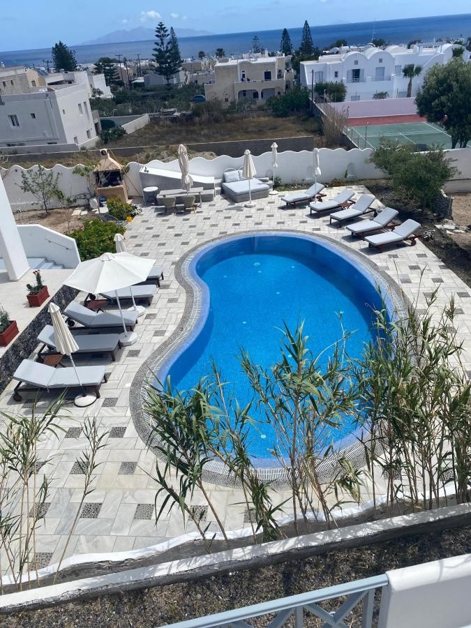 The villa was beautiful with amazing views and a fantastic pool. It was spotlessly clean and cleaned daily plenty of towels and nice toiletries provided. A bowl of fruit, bottled water and some beers were in the fridge when we arrived. Margarita even baked us a lovely cake. Margarita and Gregory were very friendly hosts who helped us to hire a car and recommended places to visit (nowhere is that far away on Santorini!) and we felt welcomed and able to get the most out of our stay on the island. Kamari is a nice place to base yourself for seeing the sights including Oia, Fira and Akrotiri.